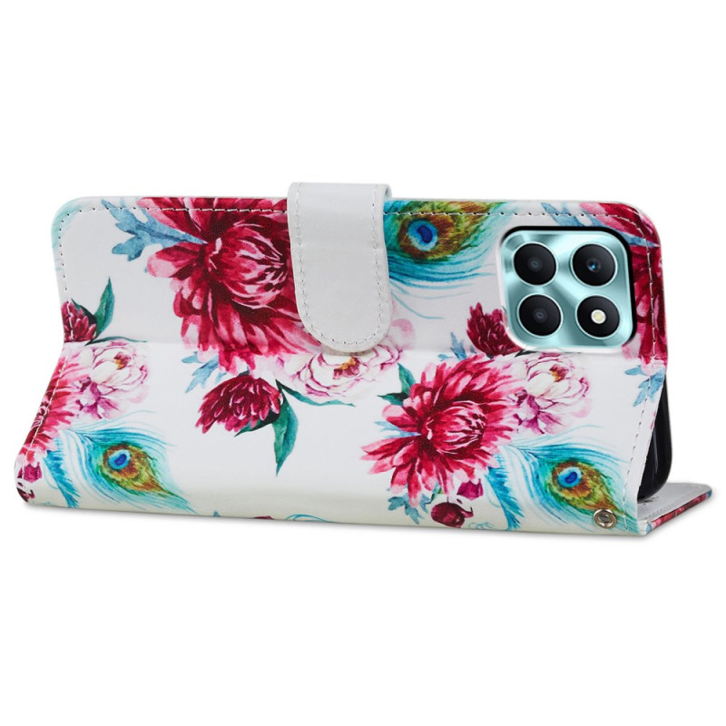 Protégez votre Honor X6a 4G avec élégance grâce à cet étui portefeuille raffiné au motif fleur de paon. Doté de 3 emplacements pour cartes, d'une poche pour billets et d'un support mains-libres, il allie style et fonctionnalité au quotidien.