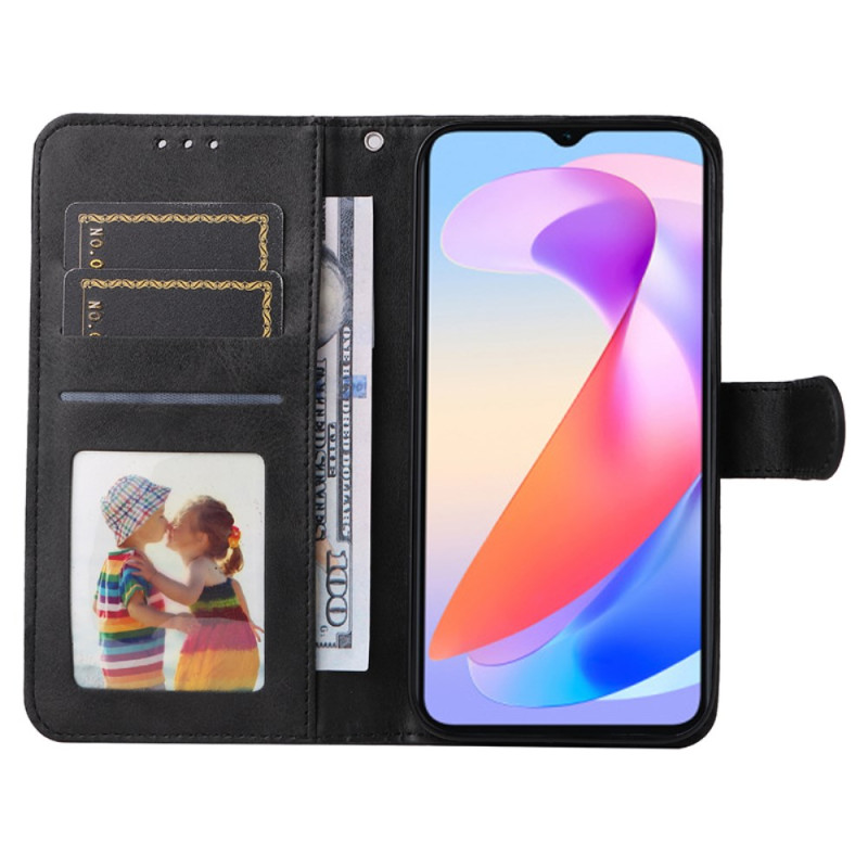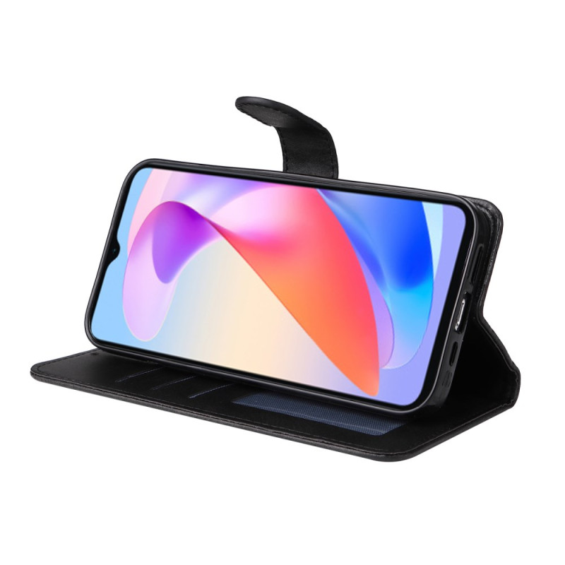 Étui portefeuille élégant en cuir PU texture veau pour Honor X6a 4G. Design multifonctionnel avec fentes pour cartes, fonction support pliable et fermeture magnétique sécurisée. Protection intégrale 360° grâce à la coque TPU enveloppante.