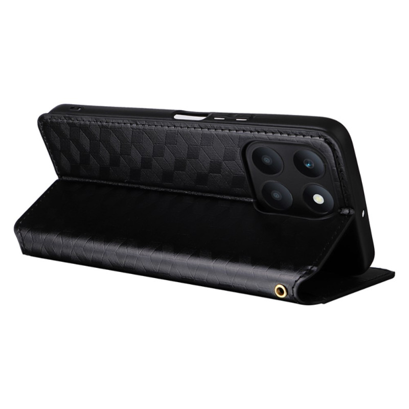Découvrez notre étui portefeuille élégant pour Honor X6a 4G. Design sophistiqué avec motif losange en relief, fonction support ajustable et fermeture magnétique sécurisée. Comprend 2 emplacements pour cartes et 1 pochette pour billets. Protection complète à 360°.