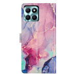 Tyylikäs keinonahkainen lompakkokotelo, jossa on vihreä ja vaaleanpunainen marmorikuvio Honor X6c 4G:lle. All-in-one-muotoilu, jossa 2 korttipaikkaa, 1 valokuvalokero ja sivutasku. Integroitu pidike handsfree-katseluun ja irrotettava käsihihna.