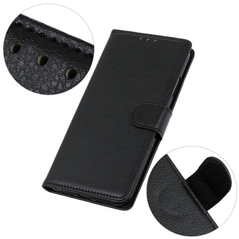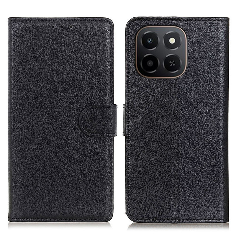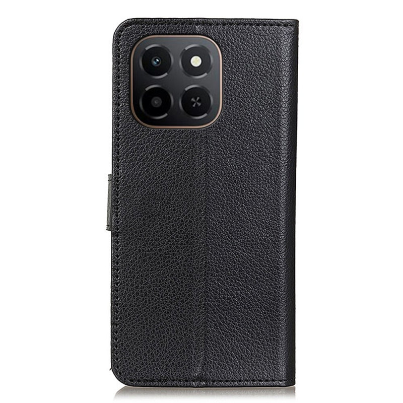 Étui portefeuille élégant en cuir PU avec texture litchi pour Honor X6c 4G. Dispose de 3 emplacements pour cartes, un compartiment latéral pour espèces, fermeture magnétique sécurisée et fonction support intégrée pour un visionnage mains libres.