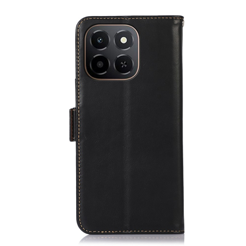 Tyylikäs aitoa nahkaa lompakkokotelo Honor X6c 4G RFID-sulkutekniikalla. Täysi suoja kolhuilta ja naarmuilta joustavan TPU:n ansiosta. 3 integroitua korttipaikkaa ja 1 käteistasku.