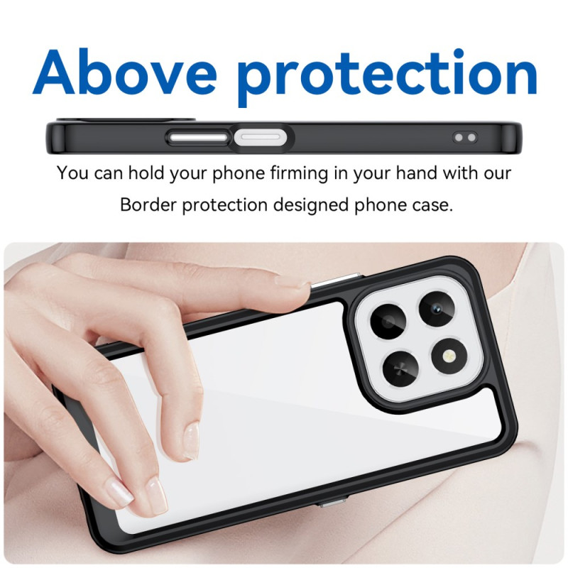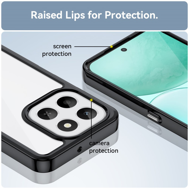 Suojaa Honor X6c 4G -puhelimesi tällä hybridikotelolla, jossa yhdistyvät pehmeä TPU ja jäykkä akryyli. Tyylikäs läpinäkyvä muotoilu, jossa on vahvistettu kulmasuoja, korotetut reunukset kameralle ja naarmuuntumaton viimeistely.