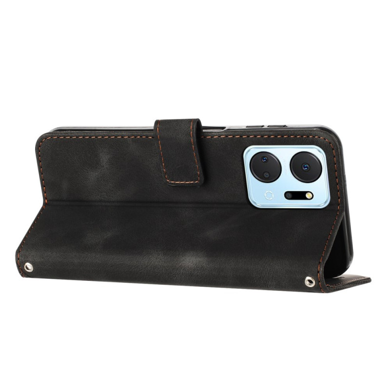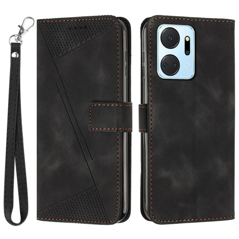 Tyylikäs lompakko suojakuori PU nahkaa ja TPU Honor X7a 4G. Moderni muotoilu kolmiomaisella kuviolla, integroitu jalusta-toiminto, 3 korttipaikkaa ja turvallinen magneettisuljenta. Täydellinen suoja jokapäiväisiä iskuja vastaan.