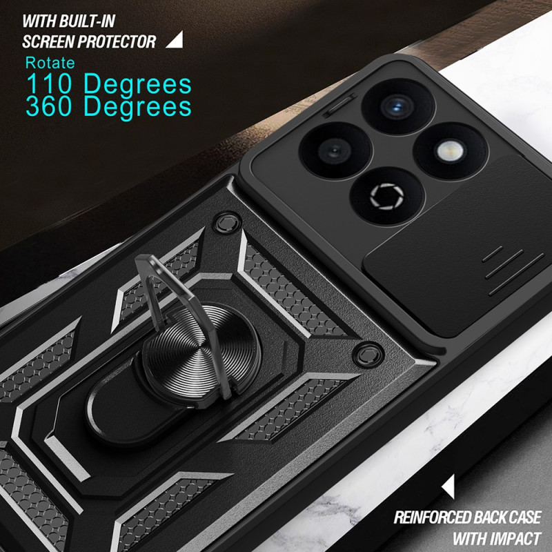 Suojaa Honor X7c 5G / 4G / 200 Smart 5G -puhelimesi tyylikkäästi tällä kestävällä suojakuorella , jossa on innovatiivinen liukuva kamerasuoja ja monitoiminen pyörivä jalusta. Sotilasluokan iskunkestävä muotoilu, jossa on integroitu magneettinen autokiinnike.