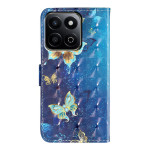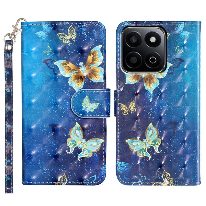 Suojaa Honor X7c 5G / 4G / 200 Smart 5G -puhelimesi tyylikkäästi tällä lompakkokotelolla, jossa on kulta-sininen 3D-perhoskuvio. Siinä on korttipaikat, säädettävä jalusta ja turvallinen magneettisuljenta, ja siinä yhdistyvät tyyli ja toiminnallisuus. Toimitetaan irrotettavalla käsihihnalla.