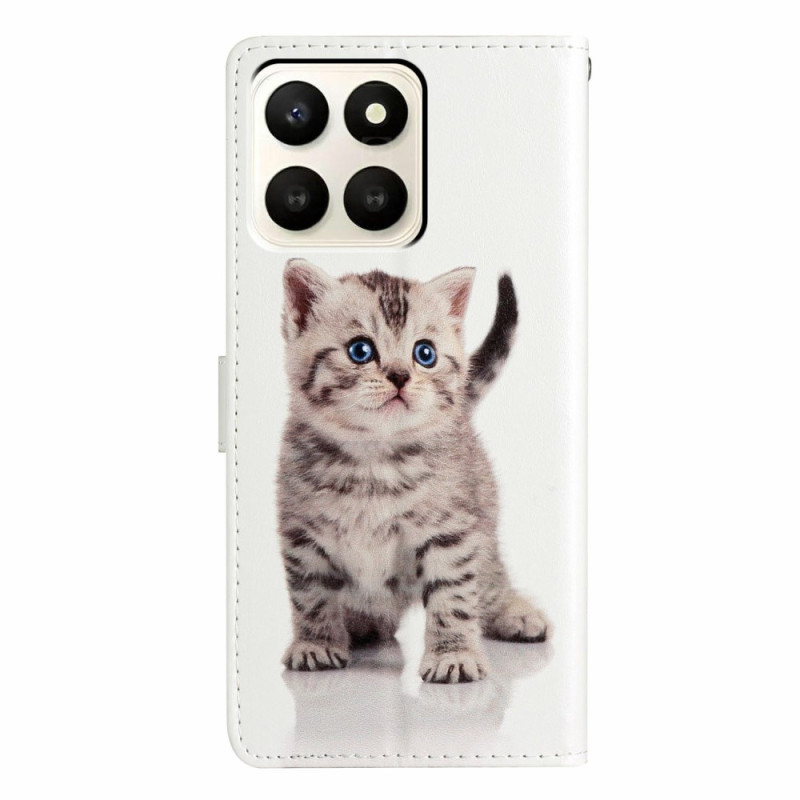 Tyylikäs lompakkokotelo, jossa on suloinen kissamotiivi Honor X7d 5G -puhelimelle. Hienostuneessa muotoilussa yhdistyvät kestävä suojaus ja ainutlaatuinen tyyli. Sisältää 3 korttipaikkaa, käteistaskun, handsfree-pidikkeen ja käytännöllisen käsihihnan.