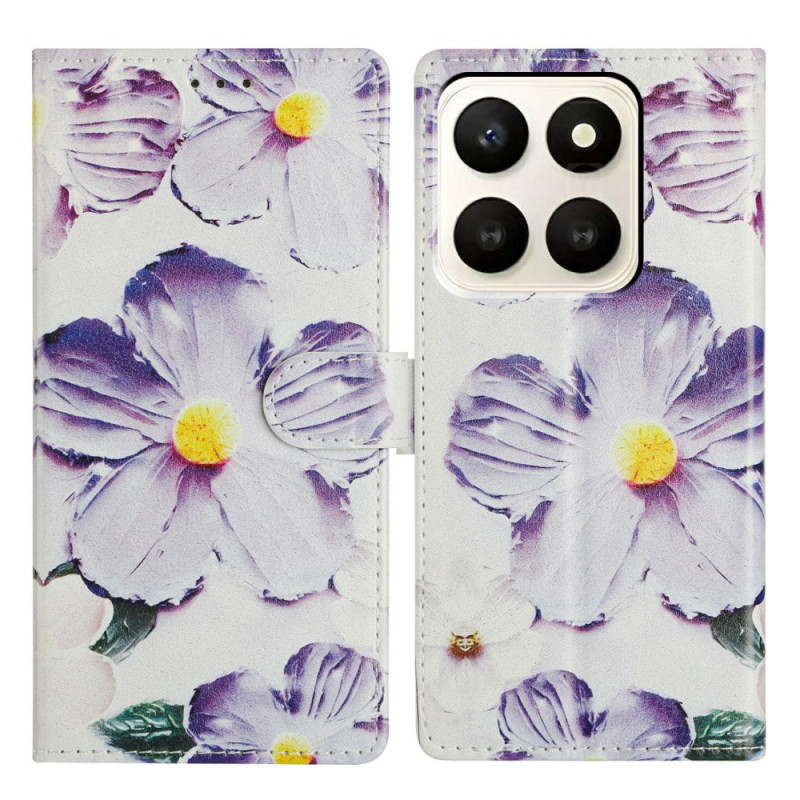Tutustu tähän tyylikkääseen lompakkokoteloon Honor X7d 5G:lle, jossa on kaunis violetti kukkakuvio. Siinä on korttipaikat, integroitu jalusta ja irrotettava rannehihna, ja siinä yhdistyvät tyyli ja käytännöllisyys jokapäiväiseen käyttöön.