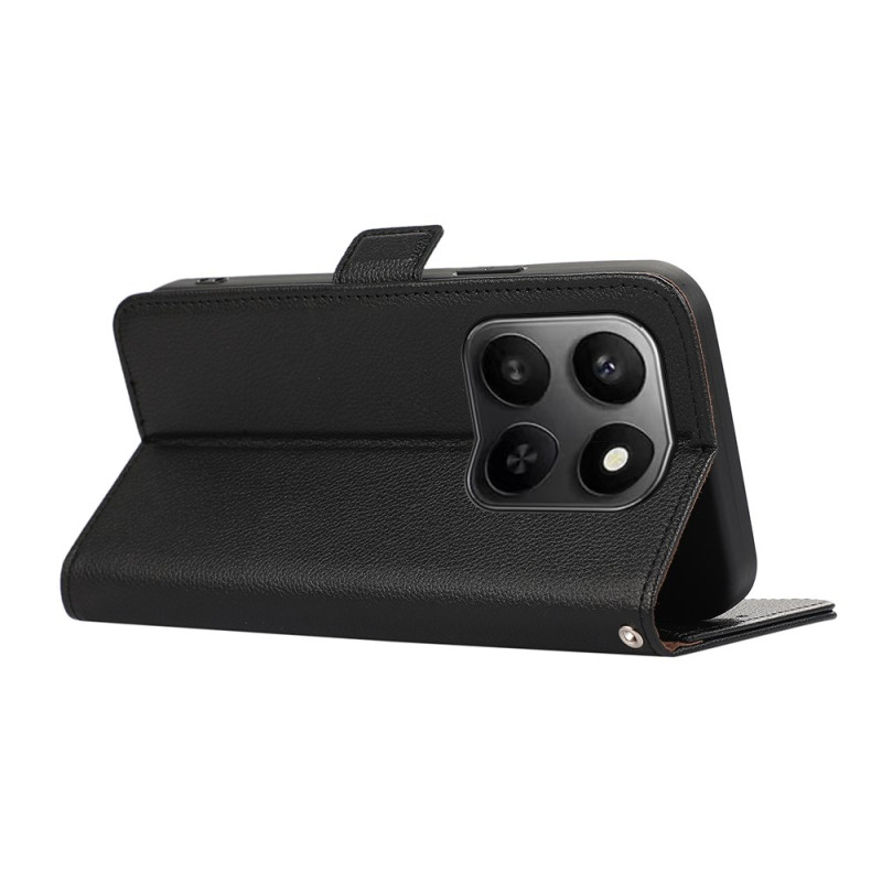 Tyylikäs lychee-kuosinen PU-nahkakotelo, jossa on integroitu RFID-suojaus. Ohut, kevyt TPU-muotoilu, korttipaikat ja handsfree-pidike. Täydellinen suoja naarmuilta ja putoamisilta Honor-älypuhelimellesi.