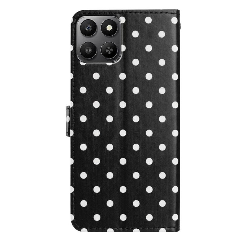 Tyylikäs PU-nahkamainen lompakkokotelo, jossa on pilkullinen kuvio Honor X7d 5G / Honor 400 Smart 5G. Mukana 3 korttipaikkaa, säädettävä katseluteline ja turvallinen magneettisuljenta täydellistä jokapäiväistä suojaa varten.