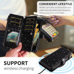 Tutustu tyylikkyyteen ja toiminnallisuuteen tämän monitoimilompakkokotelon avulla. Siinä on 10 korttipaikkaa, vetoketjullinen tasku ja irrotettava olkahihna, ja siinä yhdistyvät vahvistettu suojaus ja säihkyvä tyyli käytännölliseen arkikäyttöön.