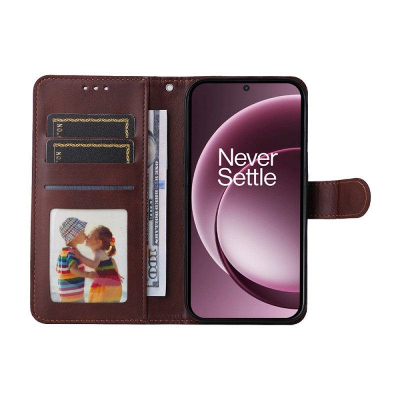Tyylikäs kuvioitu PU nahkaa lompakko suojakotelo OnePlus 15 5G. Sisältää 3 korttipaikkaa, integroidun kokoontaitettavan jalustan, irrotettavan rannehihnan ja erittäin ohuen 0,18 mm:n lukituksen avaamiseen sopivan näytönsuojan.