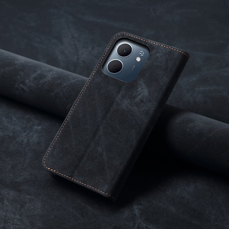 Tässä tyylikkäässä kotelossa Oppo A5X 4G:lle yhdistyvät retrotyyli ja käytännöllisyys. Se on valmistettu korkealaatuisesta PU-nahasta, jossa on aito denim-kuosi, ja se tarjoaa täyden suojan sekä sisältää 2 korttipaikkaa ja sivutaskun.