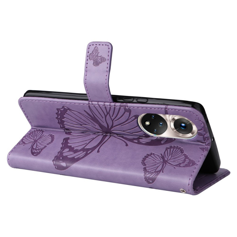 La housse en simili cuir Papillons Géants vient avec une lanière pratique pour transporter le Honor 50 / Huawei Nova 9.