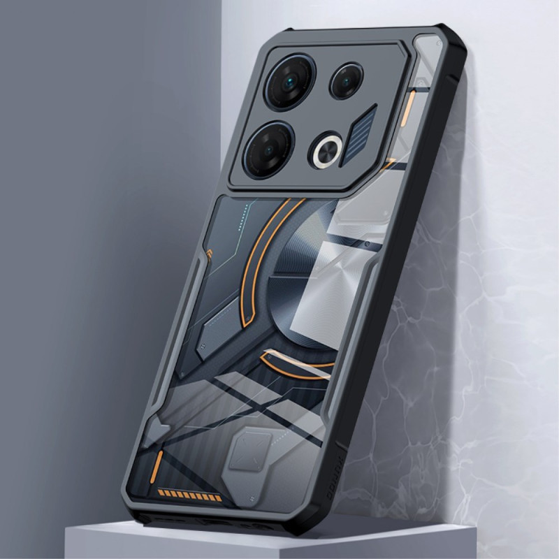 Optimaalinen suoja Infinix GT 10 Pro 5G -puhelimellesi tällä iskunkestävällä suojakuorella , jossa yhdistyvät läpinäkyvyys ja lujuus. Sisäänrakennettu ilmatyynytekniikka, korotetut reunukset suojaavat näyttöä ja kameraa, ja naarmuuntumista estävä viimeistely pitää puhelimesi parhaimman näköisenä.