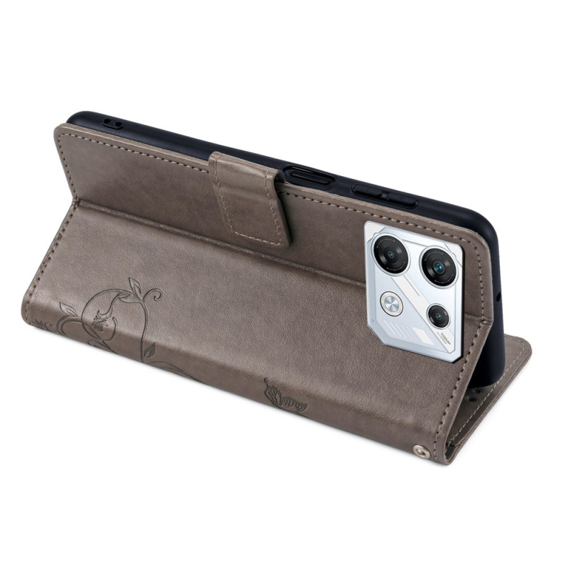 Suojaa Infinix GT 10 Pro 5G -puhelimesi tyylikkäästi tällä PU-nahkaisella lompakkokotelolla. Hienostunut muotoilu painetulla perhonen- ja kukka-aiheella, handsfree-toiminto, turvallinen magneettisuljenta ja 3 korttipaikkaa.