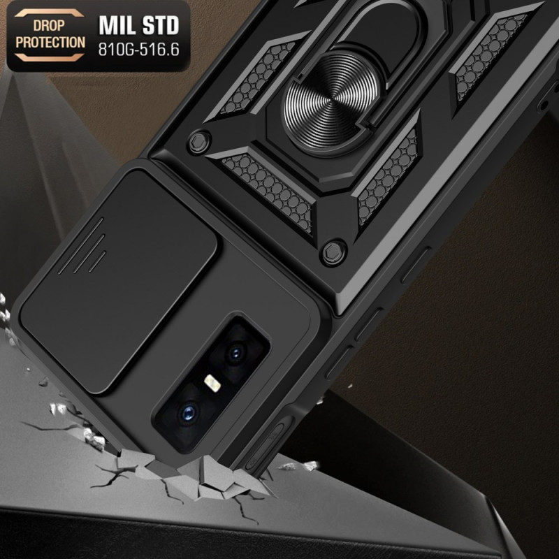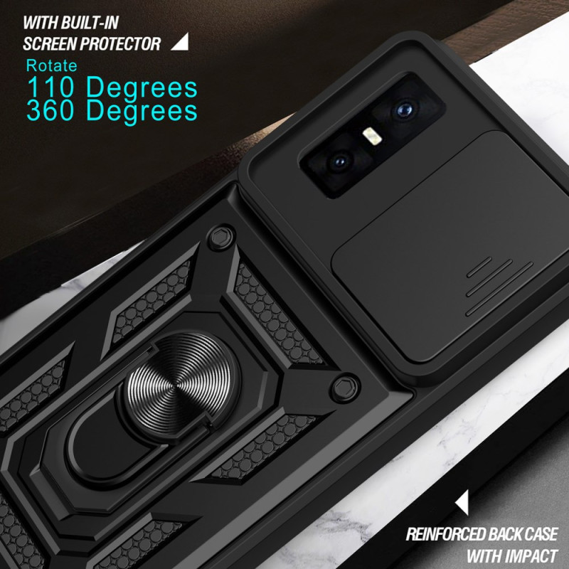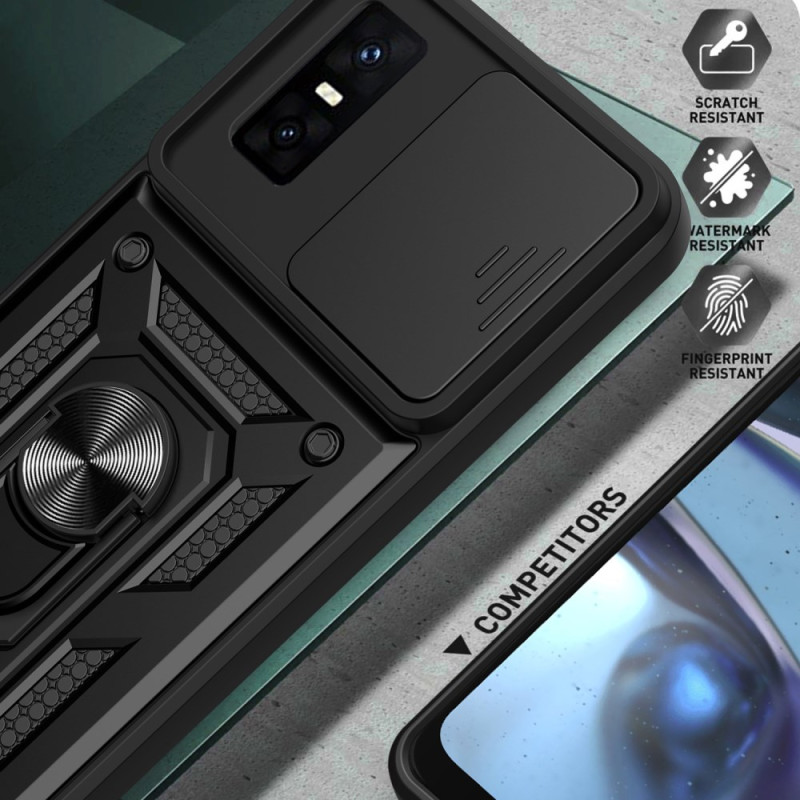 Ensiluokkainen suojakotelo Infinix GT 30 Pro 5G:lle, jossa on liukuva kamerasuoja, integroitu pyörivä kiinnike ja sotilasluokan iskunkestävyys. Yhteensopiva magneettisten autokiinnikkeiden kanssa.