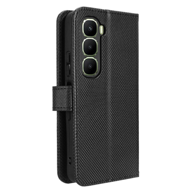 Suojaa Infinix Hot 60 5G / Hot 60i 4G -puhelimesi tyylikkäästi tällä timantinkuvioisella PU-nahkalompakkokotelolla. Kotelossa on korttipaikat, taitettava jalusta ja käytännöllinen rannehihna, ja siinä yhdistyvät tyyli ja toiminnallisuus täydellistä jokapäiväistä suojaa varten.