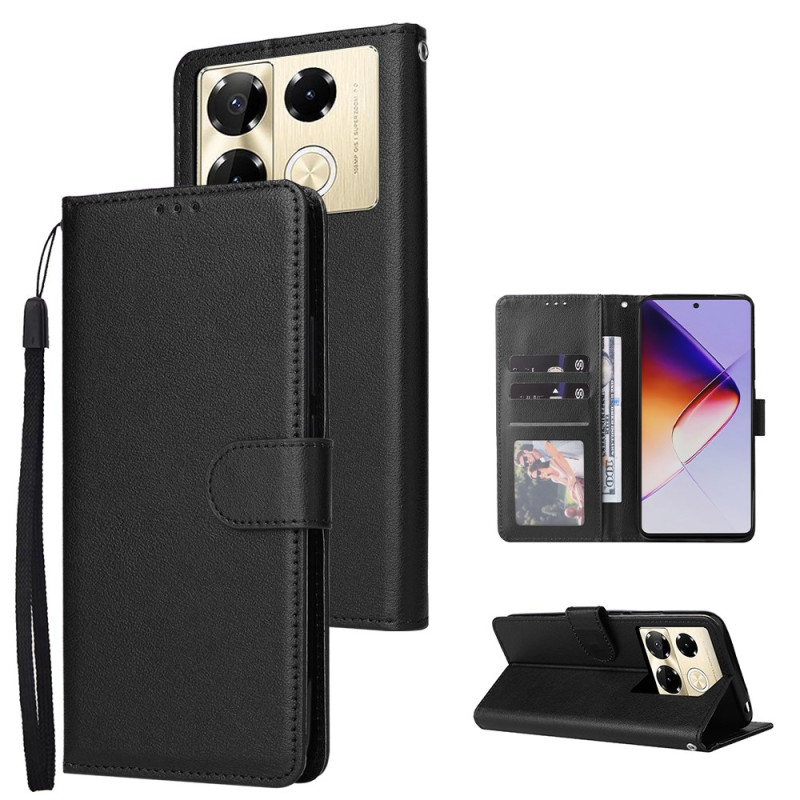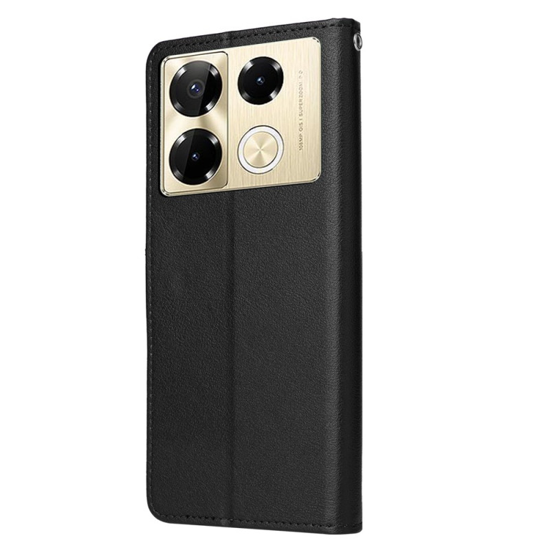 Tyylikäs lompakkokotelo Infinix Note 40 Pro 5G / 4G / 40 Pro Plus 5G:lle, jossa on useita korttipaikkoja, integroitu taitettava jalusta ja turvallinen magneettisuljenta. Käytännöllinen muotoilu, jossa on käsihihna helppoa jokapäiväistä kuljettamista varten.