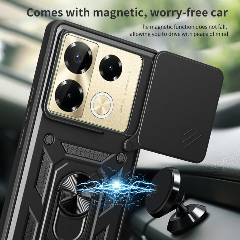 Suojaa Infinix Note 40 Pro -puhelimesi tällä ensiluokkaisella suojakuorella , jossa on liukuva linssisuojus, monikulmainen pyörivä kiinnitys ja sotilasluokan iskunkestävyys. Yhteensopiva magneettisten autokiinnikkeiden kanssa.