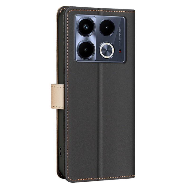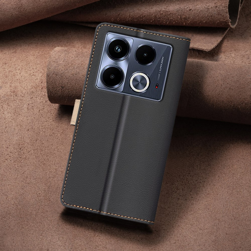 Suojaa Infinix Note 40 -puhelimesi tyylikkäästi tällä korkealaatuisella nahkaisella lompakkokotelolla. Anti-RFID-tekniikalla varustettu lompakko suojaa pankkitietosi ja tarjoaa 3 korttipaikkaa ja 1 käteistaskun.