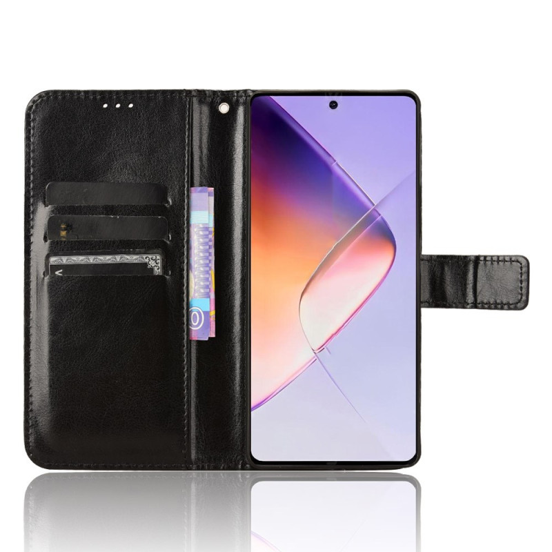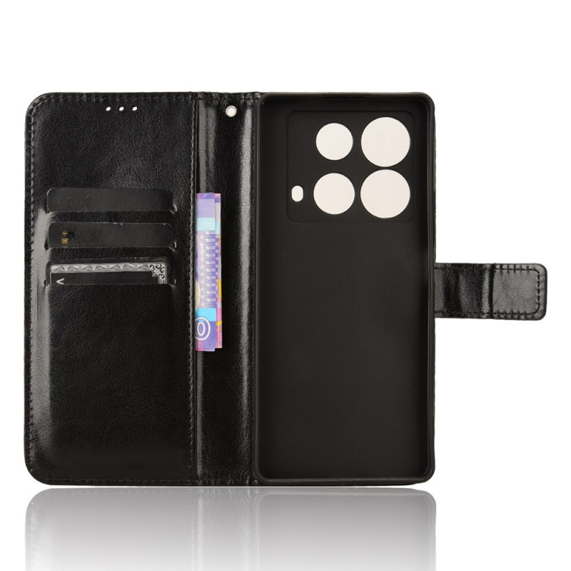 Elegantti lompakkokotelo PU-nahasta, jossa on jyvärakenne Infinix Note 40 X6853:lle. Sisältää 3 korttipaikkaa, muistiinpanolokeron ja handsfree-tukitoiminnon. Mukana turvallinen magneettisuljenta ja rannehihna helppoa kantamista varten.