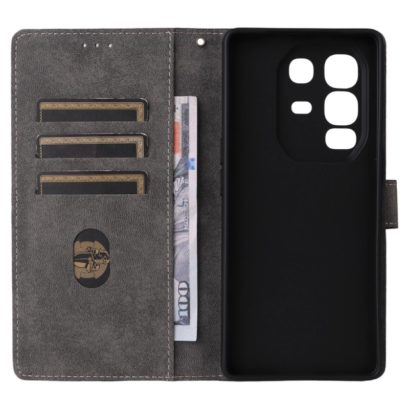 Monikäyttöinen lompakkokotelo Infinix Note 50 Pro Plus 5G:lle, jossa on RFID-lohko, integroitu pidike ja käsihihna. Sisältää 3 korttipaikkaa ja 1 käteislokeron. Turvallinen magneettisuljenta optimaaliseen suojaan joka päivä.
