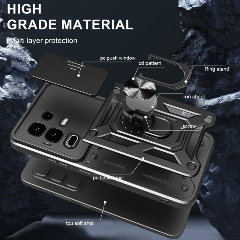 Suojaa Infinix Note 50s 5G -puhelimesi tällä kestävällä suojakuorella , jossa on innovatiivinen liukukameran suojaus, integroitu pyörivä kiinnike ja sotilasluokan iskunkestävyys. Yhteensopiva magneettisten autokiinnikkeiden kanssa.