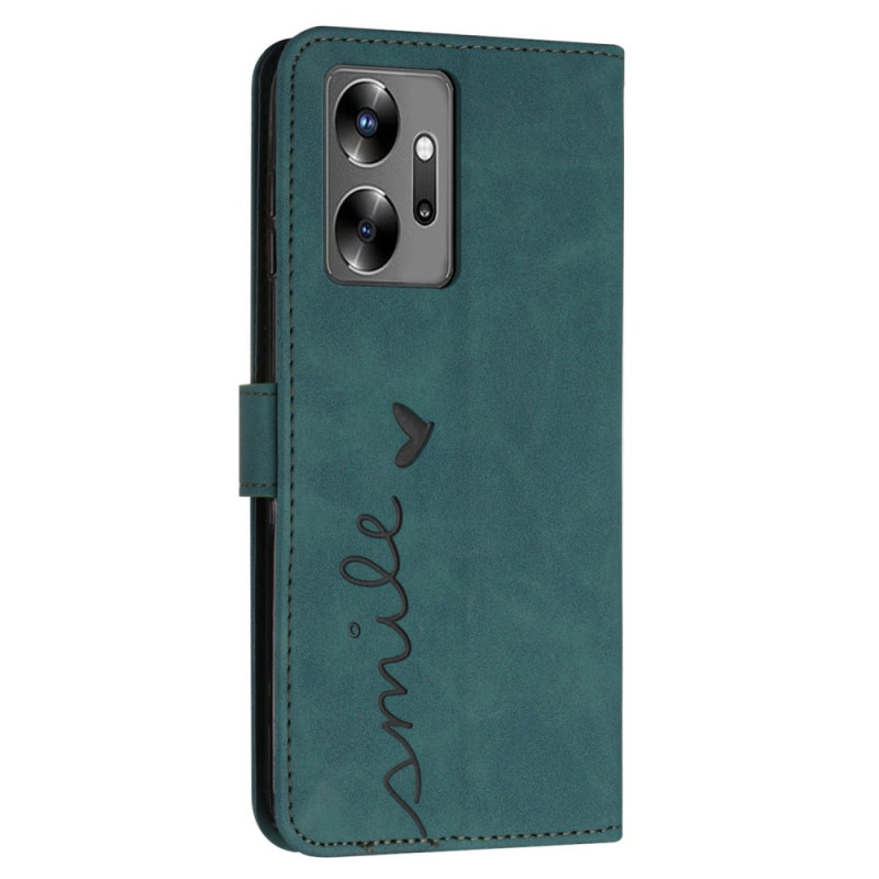 Tutustu tähän tyylikkääseen lompakkokoteloon Infinix Zero 20 4G:lle. Siinä on kaiverrettu sydänmotiivi ja sana "smile", ja siinä yhdistyvät tyyli ja toiminnallisuus. Korttipaikkojen, handsfree-tuen ja turvallisen magneettisuljennan ansiosta.