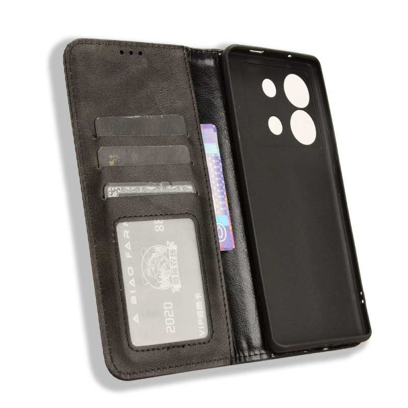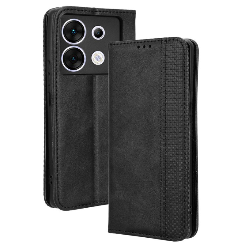 Tyylikäs lompakko suojakotelo retro PU nahkaa Infinix Zero 30 5G. Hienostunut muotoilu kaiverretulla mosaiikkireunuksella, integroidulla korttipidikkeellä ja säädettävällä jalustalla. Automaattinen magneettisuljenta täydelliseen suojaan ja käytännölliseen arkikäyttöön.