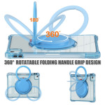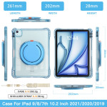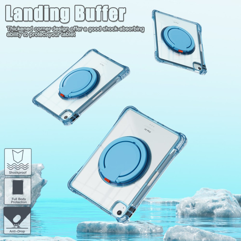 Tutustu monipuoliseen koteloon iPad Air 11 (2025) (2024)/Air (2022) (2020)/ Pro 11 (2022) (2021) (2020) (2018), jossa on 360° kääntyvä kahva, koko kehon suojaus, iskuja vaimentavat kulmat, säädettävä jalusta, läpinäkyvä akryylinen takapuoli ja säädettävä nailon-olkahihna.