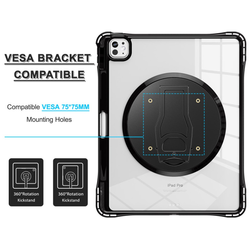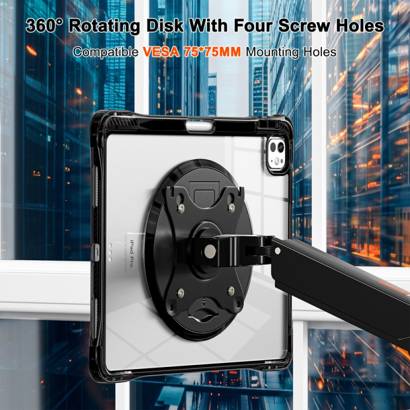 Tutustu vankkaan ja monipuoliseen koteloon iPad Prolle. Kotelossa on 360° kääntyvä jalusta, korotetut reunukset lisäävät suojaa ja se on pölytiivis. Sen läpinäkyvä akryylinen takapuoli korostaa tablettiasi ja tarjoaa samalla luotettavan suojan. VESA-yhteensopiva helppoa kiinnitystä varten.