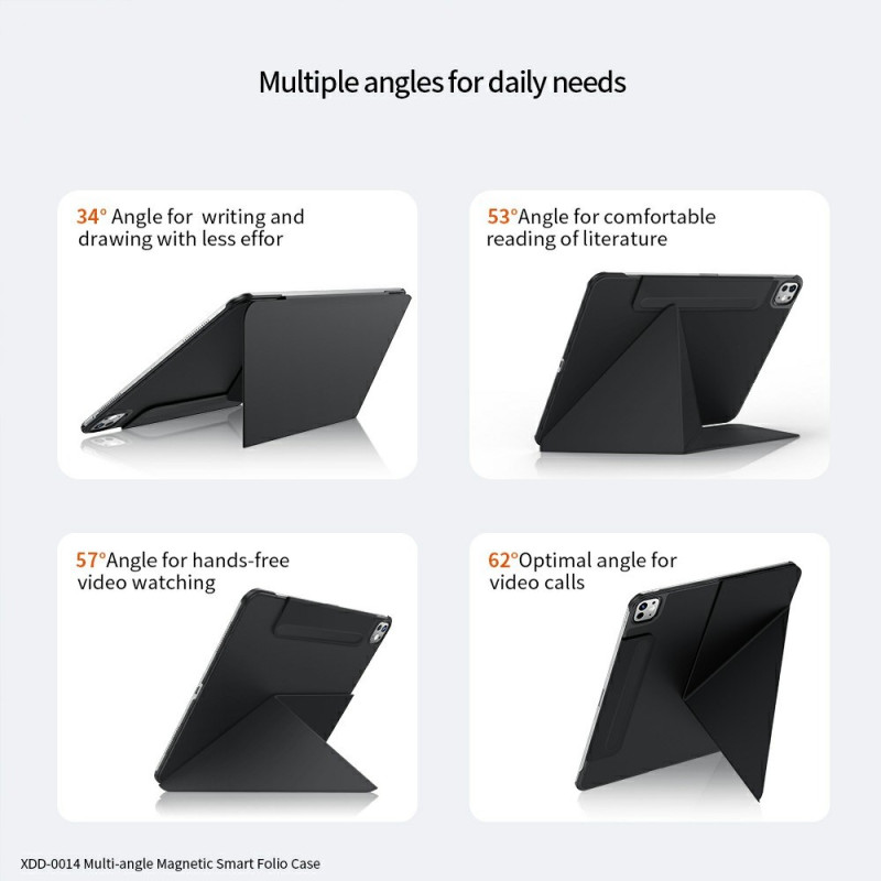 Tutustu tyylikkääseen ja monikäyttöiseen suojakoteloon iPad Pro 13 (2025) / 13 (2024) -puhelimelle. Laadukkaista materiaaleista valmistettu suojakotelo tarjoaa kestävän suojan jokapäiväisiä naarmuja ja kolhuja vastaan. Sen älykkäässä muotoilussa on automaattinen lepotoiminto, monikulmainen jalusta optimaalista mukavuutta varten ja magneettinen kynänpidike. Olitpa sitten liikkeellä tai toimistossa, tämä monipuolinen suojakuori täyttää kaikki suojaus- ja toimintatarpeesi.