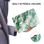 Tutustu iPad Pro 13 (2025) / 13 (2024) -puhelimen tyylikkääseen koteloon, jossa on jade-kukkakuvio. Se tarjoaa täydellisen suojan ja muuntuu käytännölliseksi jalustaksi handsfree-katselua varten. Korttipaikoilla ja kynäsilmukalla varustetussa kotelossa yhdistyvät tabletin toiminnallisuus ja tyyli.