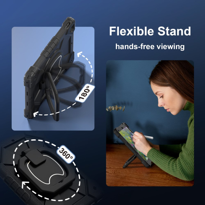 Protégez votre iPad avec style grâce à la coque C3. Dotée d'une double protection en silicone et PC, elle offre une résistance optimale aux chocs quotidiens. Son support rotatif 360° permet un visionnage mains libres en mode paysage ou portrait.