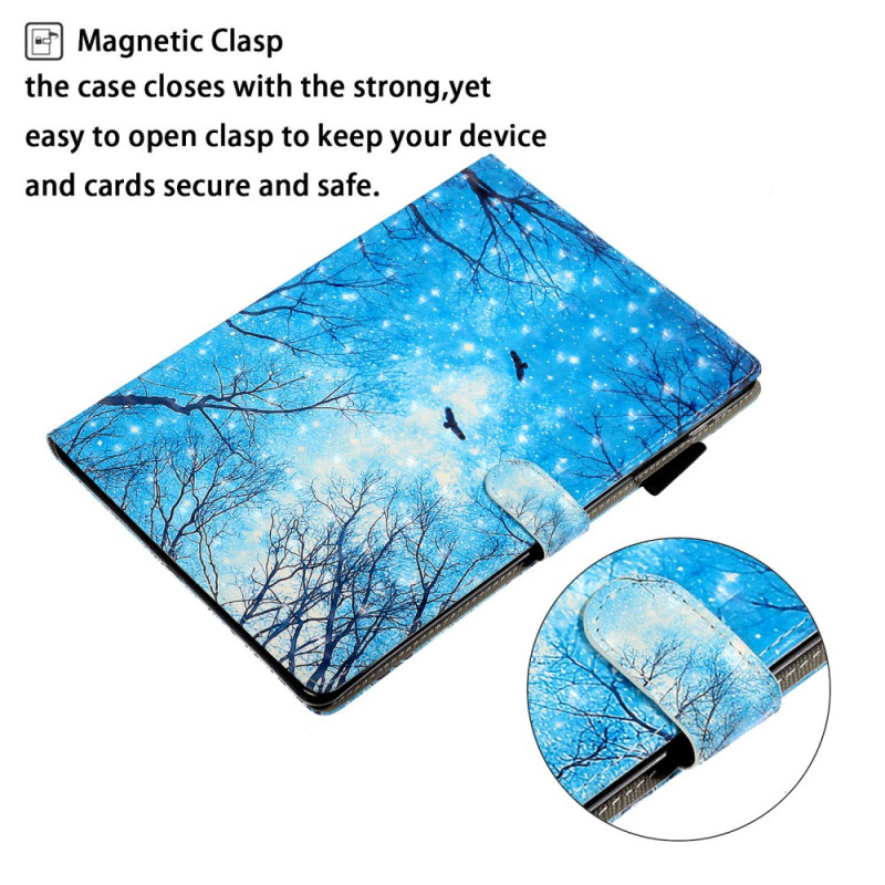 Protégez votre iPad( 9.7 pouces) / iPad Pro 9.7 pouces / iPad Air / iPad Air 2 avec élégance grâce à cet étui portefeuille au motif ciel bleu lumineux. Doté de fentes pour cartes, d'un support ajustable et d'une fermeture magnétique sécurisée, il allie style et fonctionnalité pour un usage quotidien.
