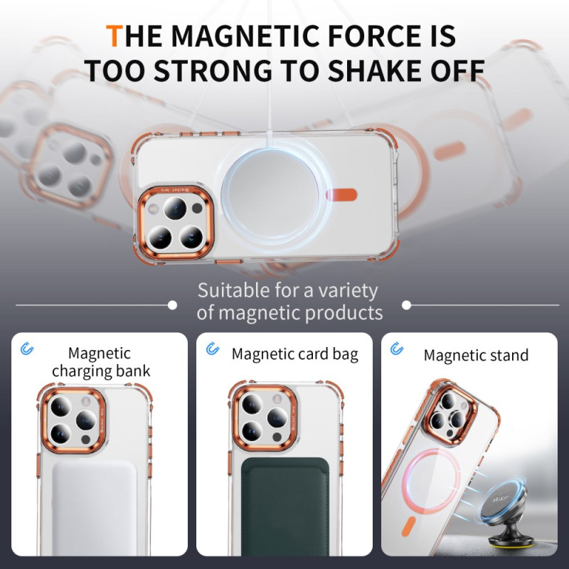 - Vahva magneettinen adsorptio: Kiinnittyy lujasti laturiin magneettisesti. Yhteensopiva kaikkien MagSafe-lisävarusteiden, kuten lompakon, rengastelineen ja ulkoisen akun kanssa. Voidaan kiinnittää tukevasti auton puhelimen pidikkeeseen (pidike ei sisälly toimitukseen).