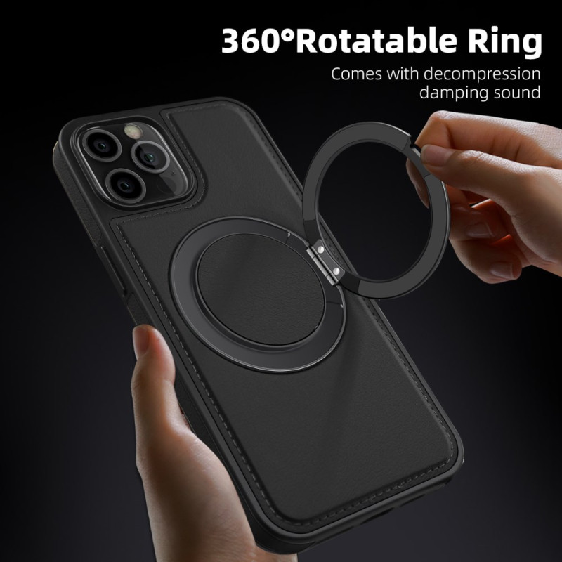 Tutustu tyylikkääseen ja käytännölliseen koteloon iPhone 12 / 12 Pro:lle. Kotelossa on 360° kääntyvä rengas, se tarjoaa vankan suojan TPU:sta ja PU-nahasta, ja se on MagSafe-yhteensopiva. Nauti optimaalisesta katselusta monikulmatuen ja näytön ja kameran vahvistetun suojan ansiosta.