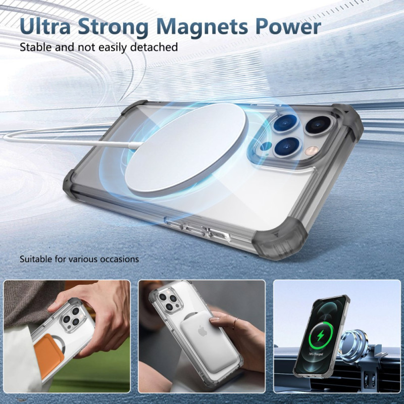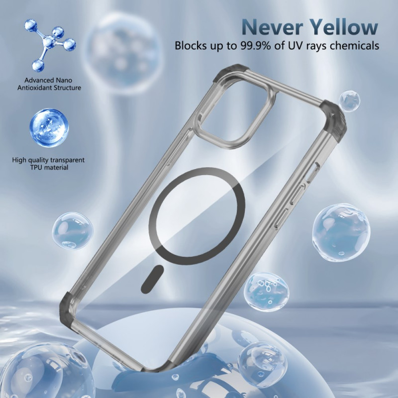 Tutustu innovatiiviseen koteloon iPhone 12 / 12 Pro:lle. TPU:ta ja PC:tä yhdistävä suojakotelo tarjoaa optimaalisen suojan vahvistettujen kulmien ja ilmapehmustetun muotoilun ansiosta. Tämä MagSafe-latauksen kanssa yhteensopiva läpinäkyvä suojakuori säilyttää puhelimesi estetiikan ja tarjoaa samalla maksimaalisen suojan kameralle. Valitse äärimmäinen suoja tyylistä tinkimättä iPhone 12 / 12 Pro -kotelomme avulla.