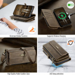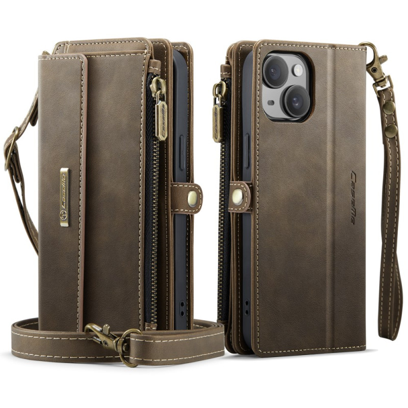 Monikäyttöinen lompakkokotelo iPhone 13 Minille, jossa on anti-RFID-tekniikka. Sisältää 9 korttipaikkaa, vetoketjutaskun ja handsfree-tuen. Monipuolinen muotoilu kantamiseen olkalaukkuna tai kytkimenä.