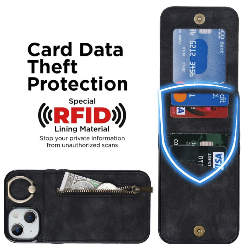 Suojaa iPhone 13 mini -puhelimesi tyylikkäästi tällä monikäyttöisellä lompakkokotelolla. Siinä on pyörivä tukirengas, korttipaikat RFID-suojalla ja vetoketjullinen tasku, ja siinä yhdistyvät tyylikkyys ja käytännöllisyys jokapäiväiseen käyttöön.