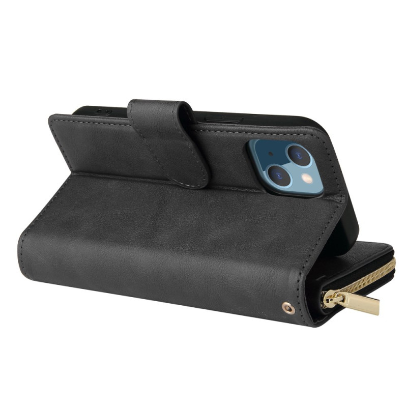 Monikäyttöinen lompakkokotelo iPhone 13 Minille, jossa on 9 korttipaikkaa, vetoketjullinen tasku, turvallinen magneettisuljenta ja katselualusta. Siinä on käytännöllinen käsihihna helppoa jokapäiväistä kuljettamista varten.