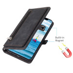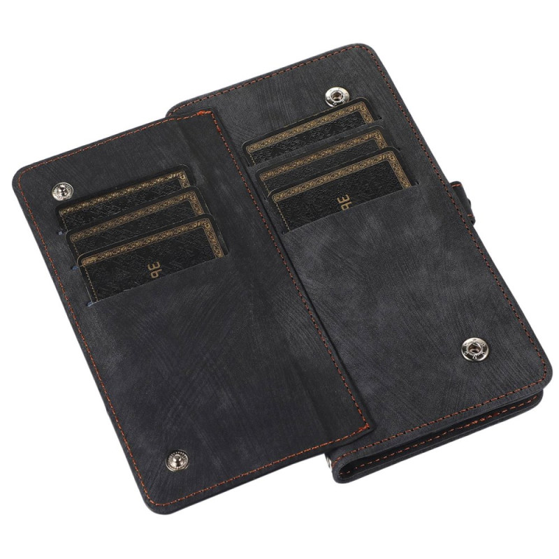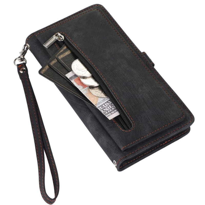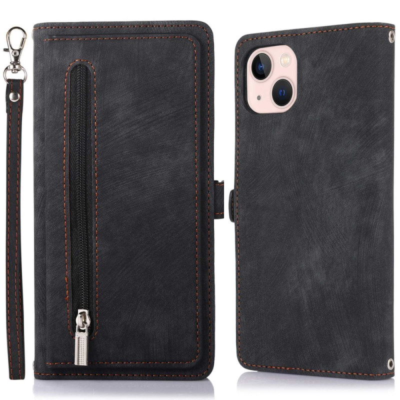 Monikäyttöinen PU-nahkamainen lompakkokotelo iPhone 13 mini. Sisältää 9 korttipaikkaa, turvallisen vetoketjutaskun ja integroidun jalustan. Mukana irrotettava käsihihna käytännölliseen jokapäiväiseen kantamiseen.