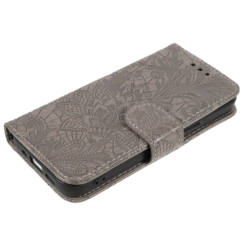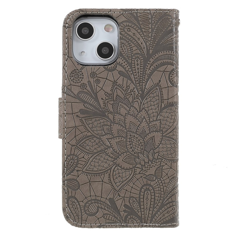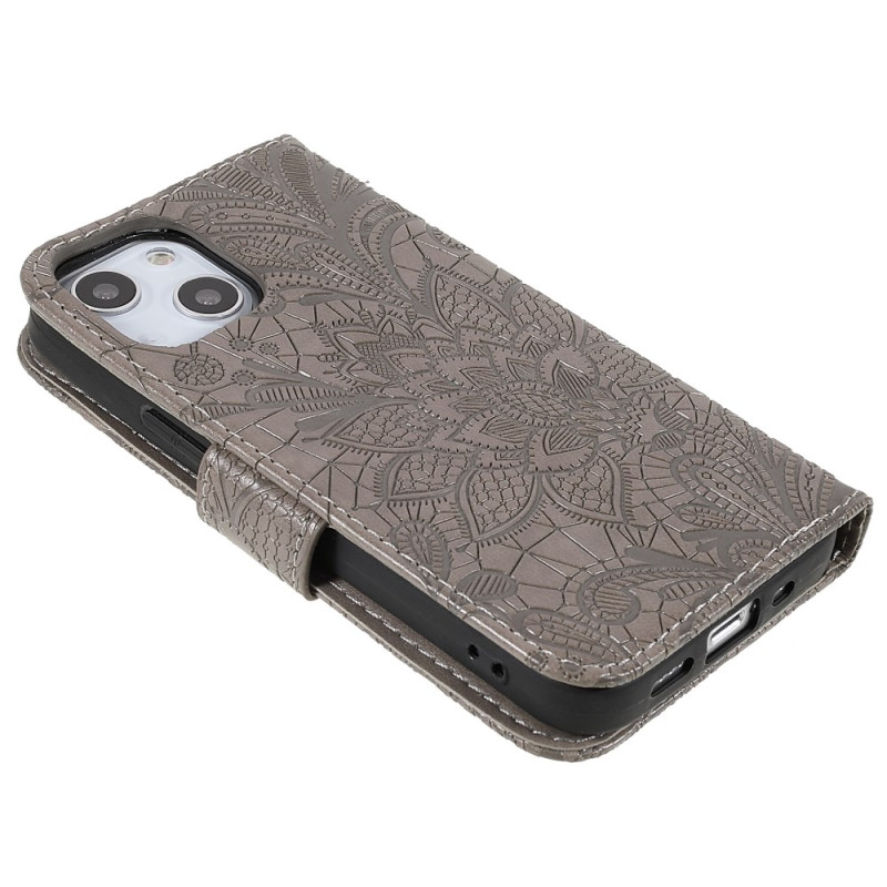 Tutustu tähän tyylikkääseen lompakkokoteloon, jossa on läppä ja pitsinen kukka-aihe. Siinä on useita korttipaikkoja, käytännöllinen jalusta-toiminto ja turvallinen rannehihna, ja siinä yhdistyvät hienostunut tyyli ja optimaalinen suoja iPhone 13 mini -puhelimelle.