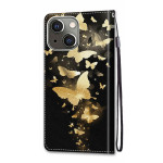 Suojaa iPhone 13 Mini -puhelimesi tyylikkäästi tällä lompakkokotelolla, jossa on kultainen perhoskuvio. Siinä on käytännöllinen kokoontaitettava pidike, korttipaikkoja ja käsihihna, ja siinä yhdistyvät tyyli ja toiminnallisuus, jotka helpottavat jokapäiväistä elämääsi.