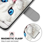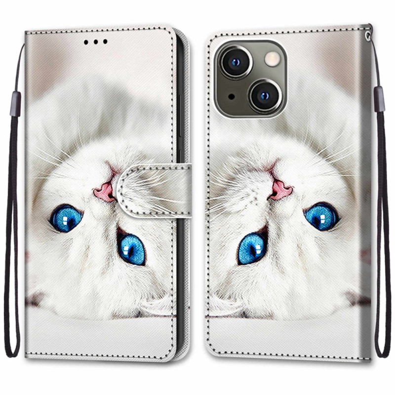 Suojaa iPhone 13 Mini -puhelimesi tyylikkäästi tällä tyylikkäällä lompakkokotelolla, jossa on valkoinen kissakuvio. Kotelossa on käytännöllinen, kokoontaitettava pidike, lokerot korteille ja käteiselle sekä turvallinen magneettisuljenta.