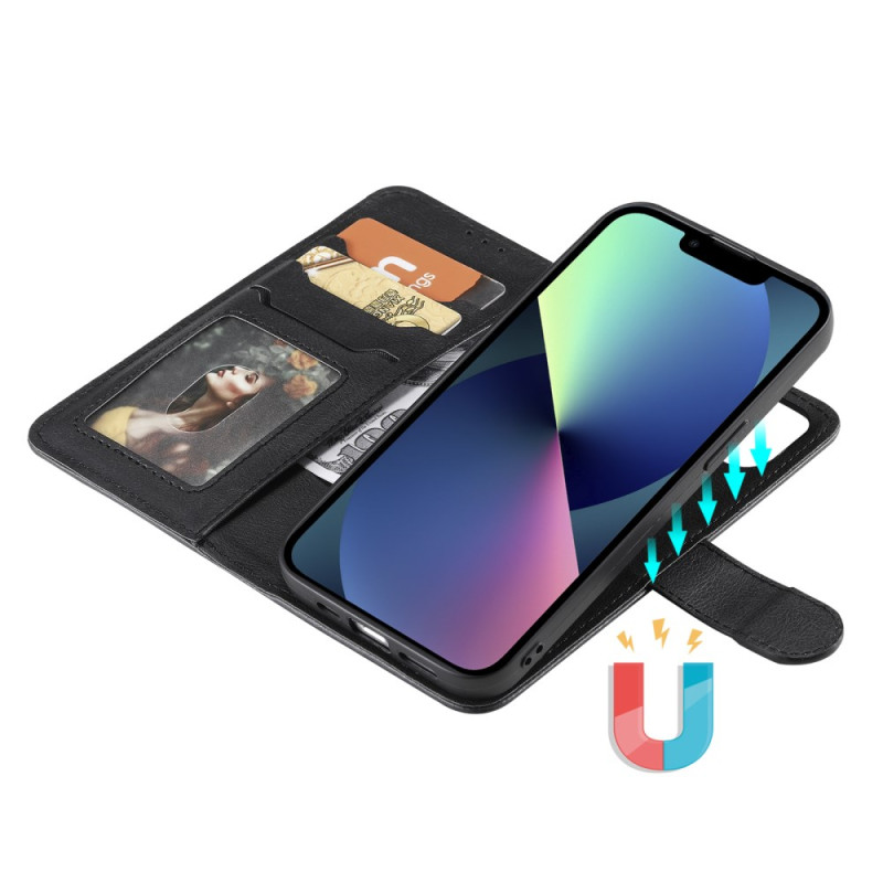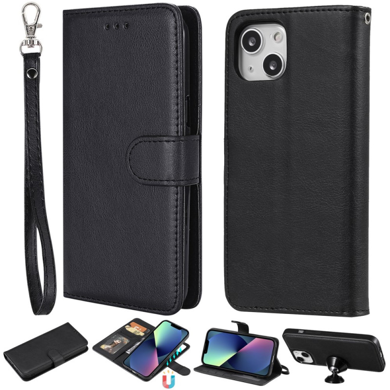 Monipuolinen 2-in-1-suojakuori iPhone 13 Minille, jossa yhdistyvät tyylikäs lompakko ja irrotettava magneettinen selkäosa. Nauti useista kortti- ja käteislokeroista, jalusta-toiminnosta ja käytännöllisestä käsihihnasta yksinkertaista päivittäistä käyttöä varten.