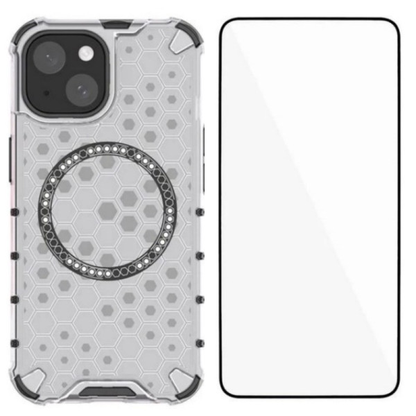 Tutustu iPhone 13:n TPU+PC-hybridikoteloon, jossa yhdistyvät tyylikkyys ja optimaalinen suojaus. Sen läpikuultava hunajakennomuotoilu, vahvistetut kulmat ja MagSafe-yhteensopivuus tekevät siitä välttämättömän lisävarusteen. Nauti maksimaalisesta suojasta mukana tulevan karkaistun lasin ansiosta ja täydellisistä otoksista objektiiville tarkoitetun suuren leikkauksen ansiosta.