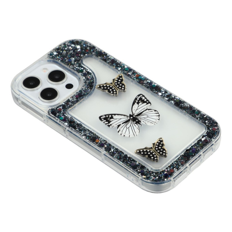 Suojaa iPhone 13 Pro Max -puhelimesi tyylikkäästi tällä suojakuorella , joka on koristeltu 3D-perhosilla ja kimaltelevilla paljeteilla. Joustavasta TPU:sta ja epoksihartsikerroksesta valmistettu suojakotelo suojaa luotettavasti iskuilta ja naarmuilta ja tuo samalla puhelimeesi ripauksen taikaa.