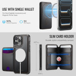 Monikäyttöinen suojakuori iPhone 13 Pro Max 6.7":lle MagSafe-tekniikalla. Sisältää 6 korttipaikkaa RFID-suojalla, integroidun säädettävän pidikkeen ja vankan rakenteen. Irrotettava korttipidike tarjoaa maksimaalisen joustavuuden.